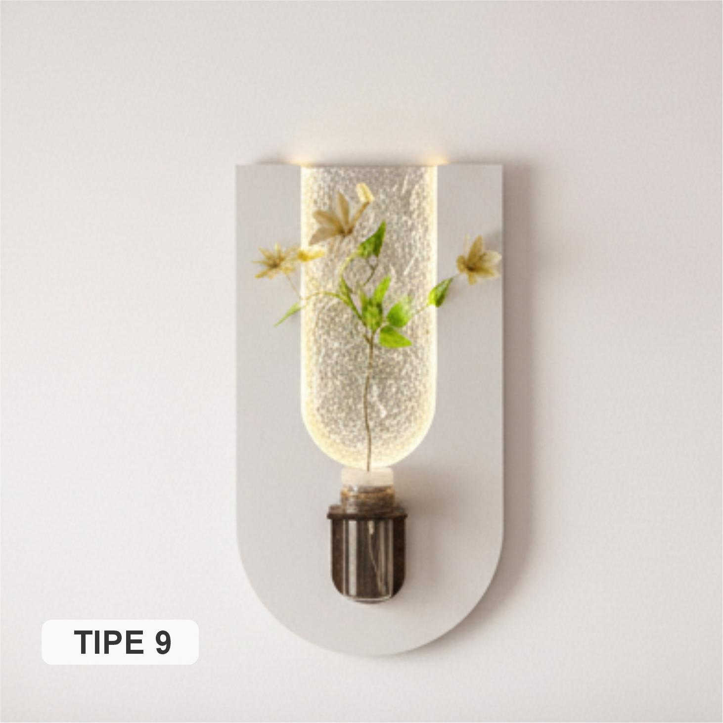 Dekor vertikal minimalis dengan efek cahaya lembut dan modern.