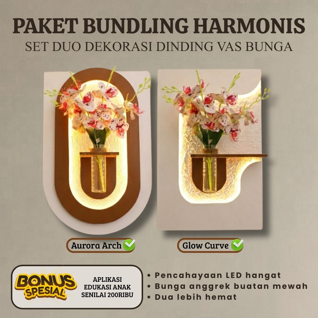Hadirkan sentuhan elegan dan hangat pada ruangan Anda dengan Paket Bundling Harmonis. Perpaduan desain modern dan pencahayaan lembut menciptakan dekorasi dinding yang bukan hanya cantik, tetapi juga memberi suasana nyaman di rumah.
